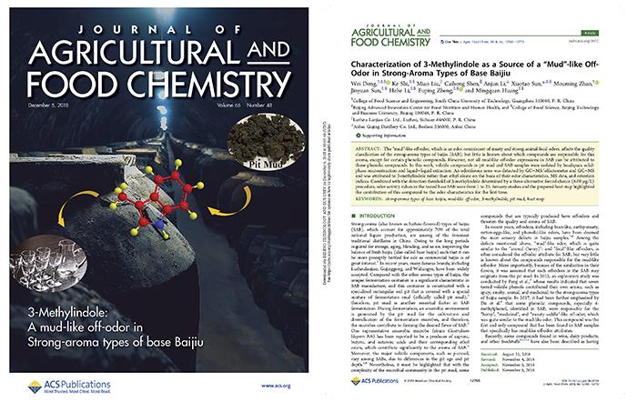 近日,公司与北京工商大学孙宝国院士团队的合作项目,在美国化学学会期刊Journal of Agricultural and Food Chemistry最新一期(2018,Volume 66,Issue 48)发表了题为 “Characterization of 3-Methylindole as a Source of a ‘Mud’-like Off-Odor in Strong-Aroma Types of Base Baijiu” 的封面论文。