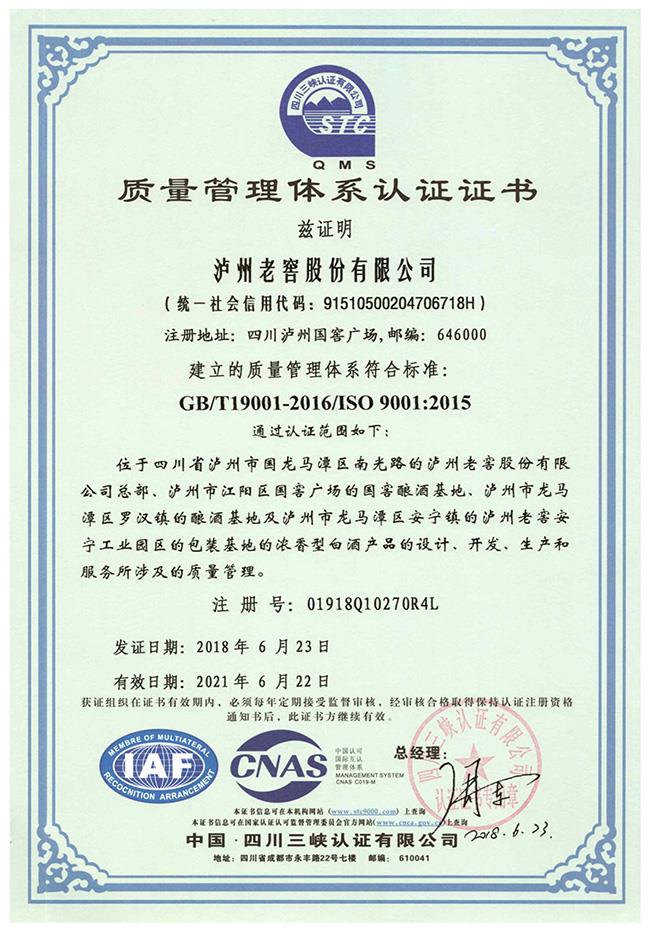 质量管理体系认证证书