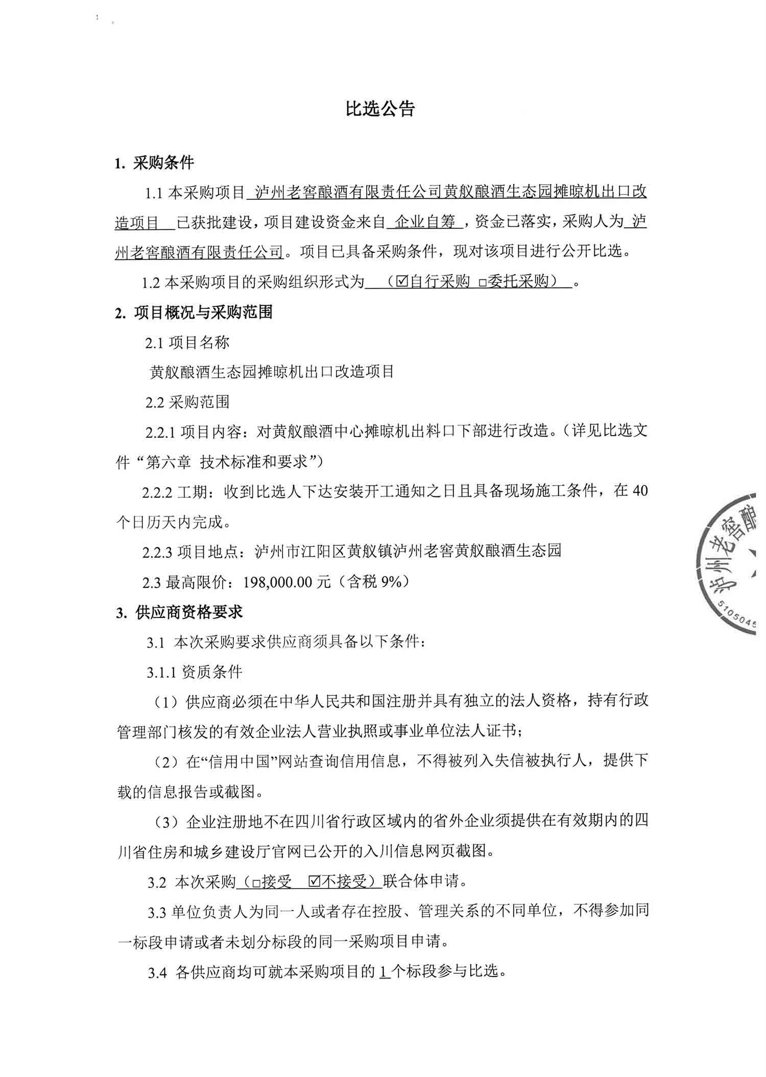 蘑菇视频 酿酒有限责任公司黄舣酿酒生态园摊晾机出料口改造项目比选公告