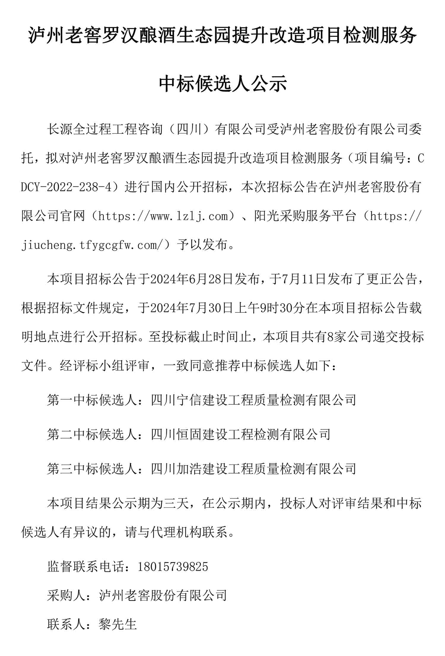蘑菇视频 罗汉酿酒生态园提升改造项目检测服务中标候选人公示