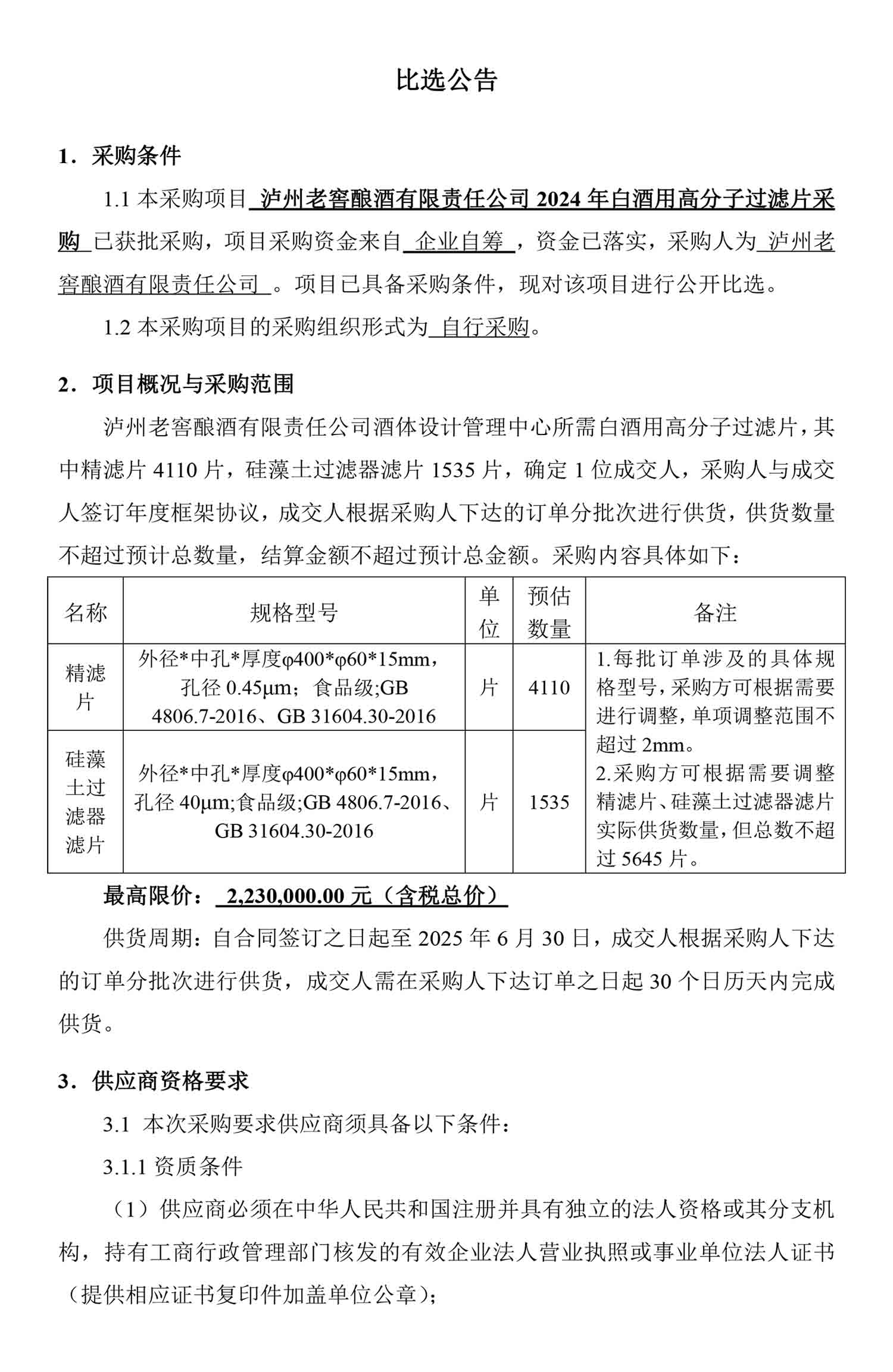 蘑菇视频 酿酒有限责任公司2024年白酒用高分子过滤片采购比选公告