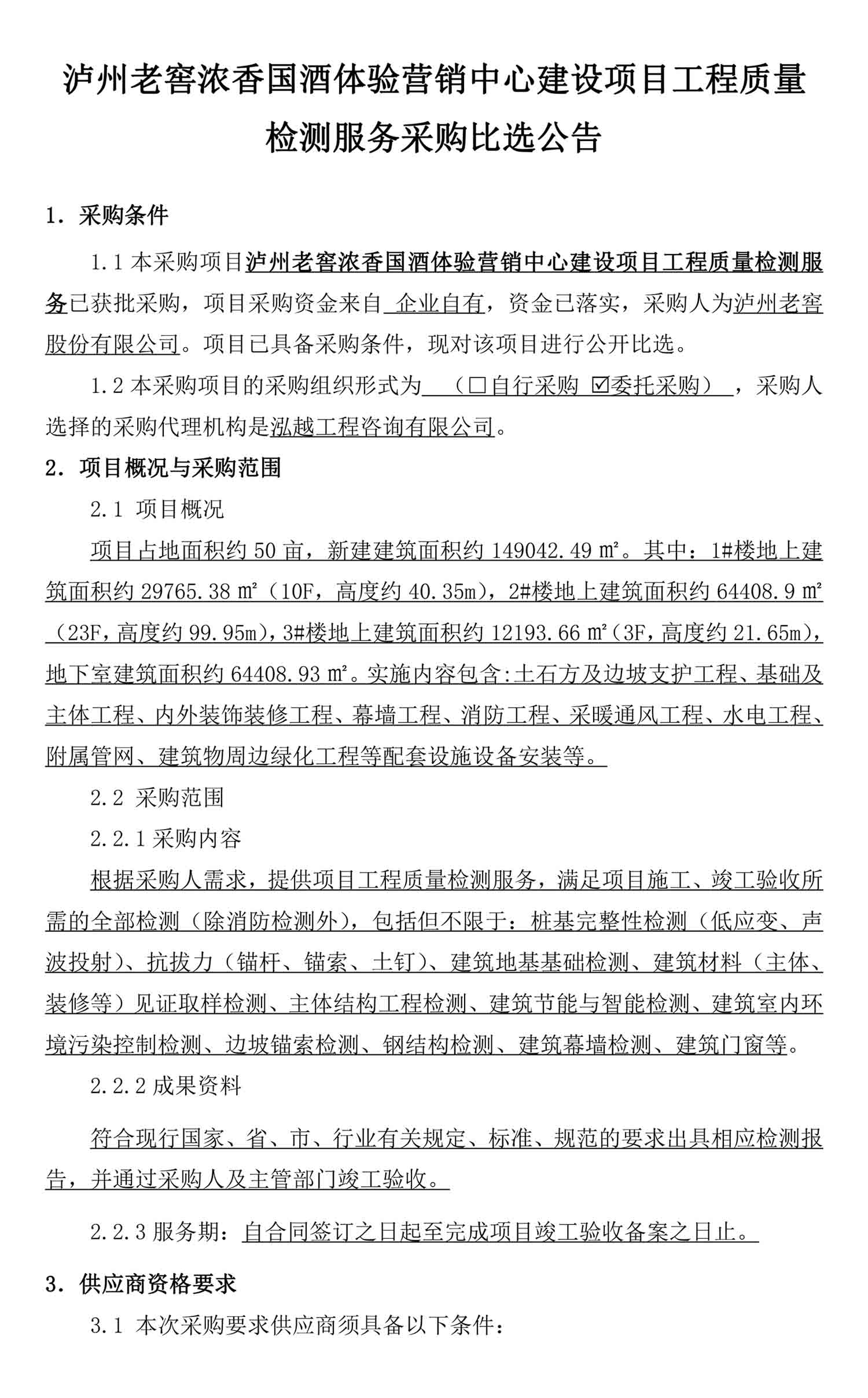 蘑菇视频 浓香国酒体验营销中心建设项目工程质量检测服务采购比选公告