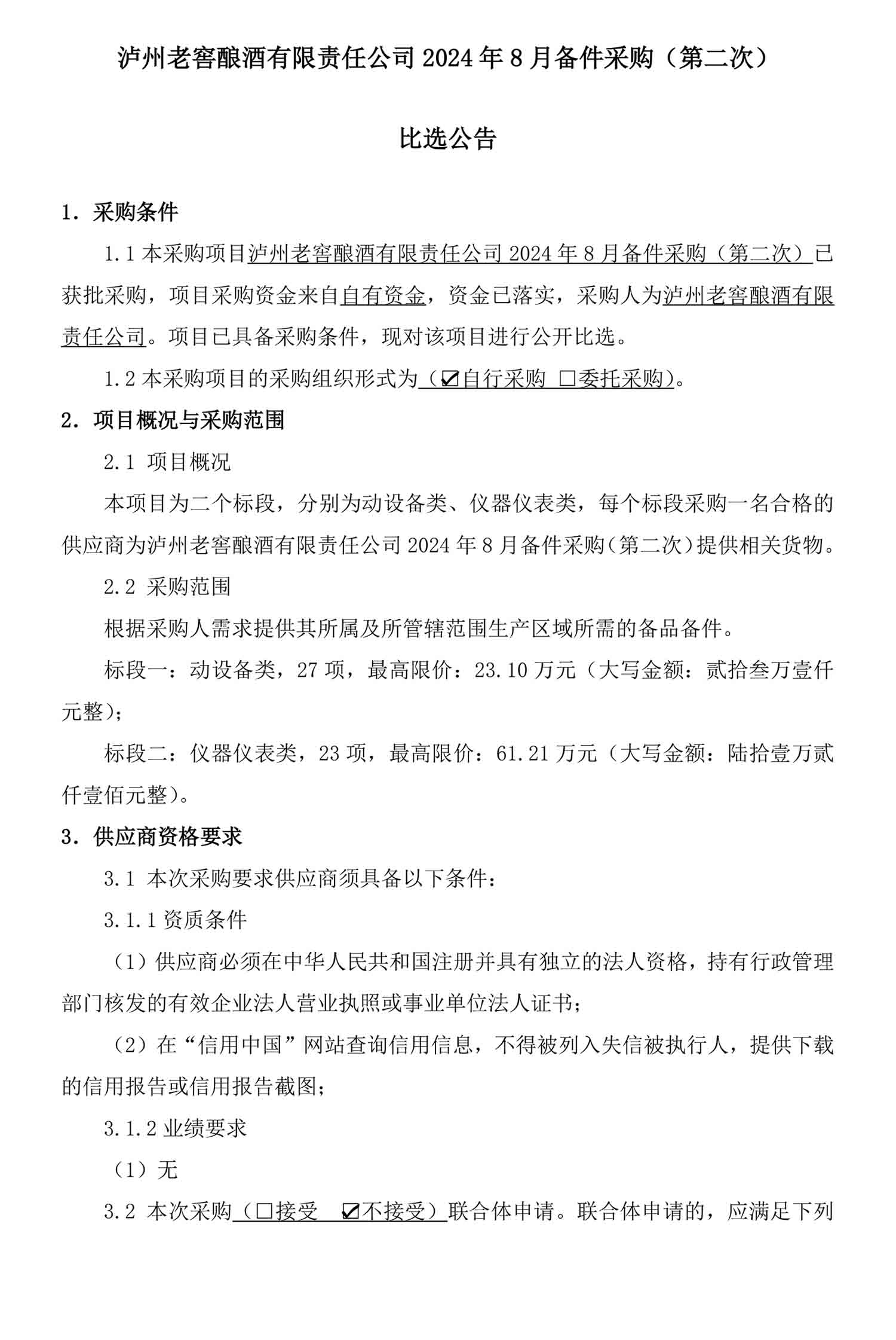 蘑菇视频 酿酒有限责任公司2024年8月备件采购(第二次)比选公告