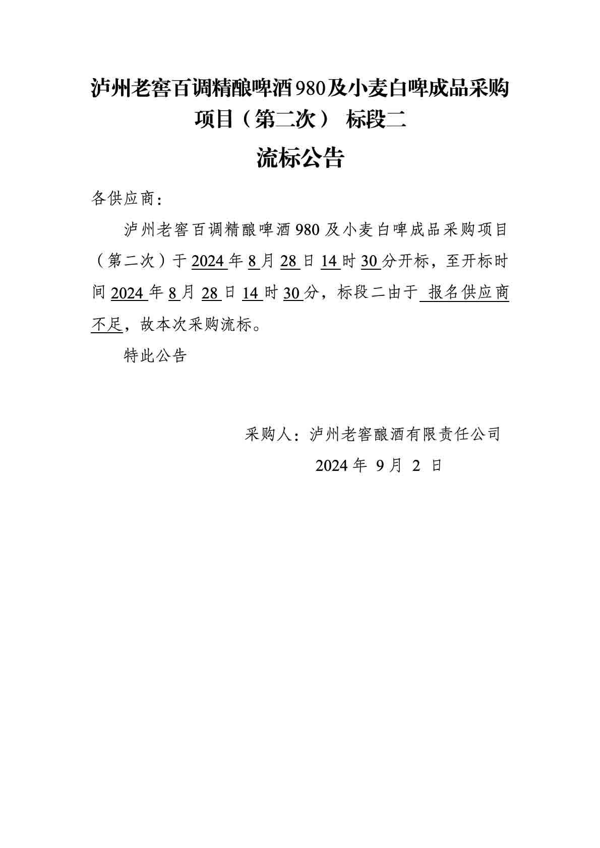 蘑菇视频 百调精酿啤酒980及小麦白啤成品采购项目(第二次)标段一成交候选人公示、标段二流标公告