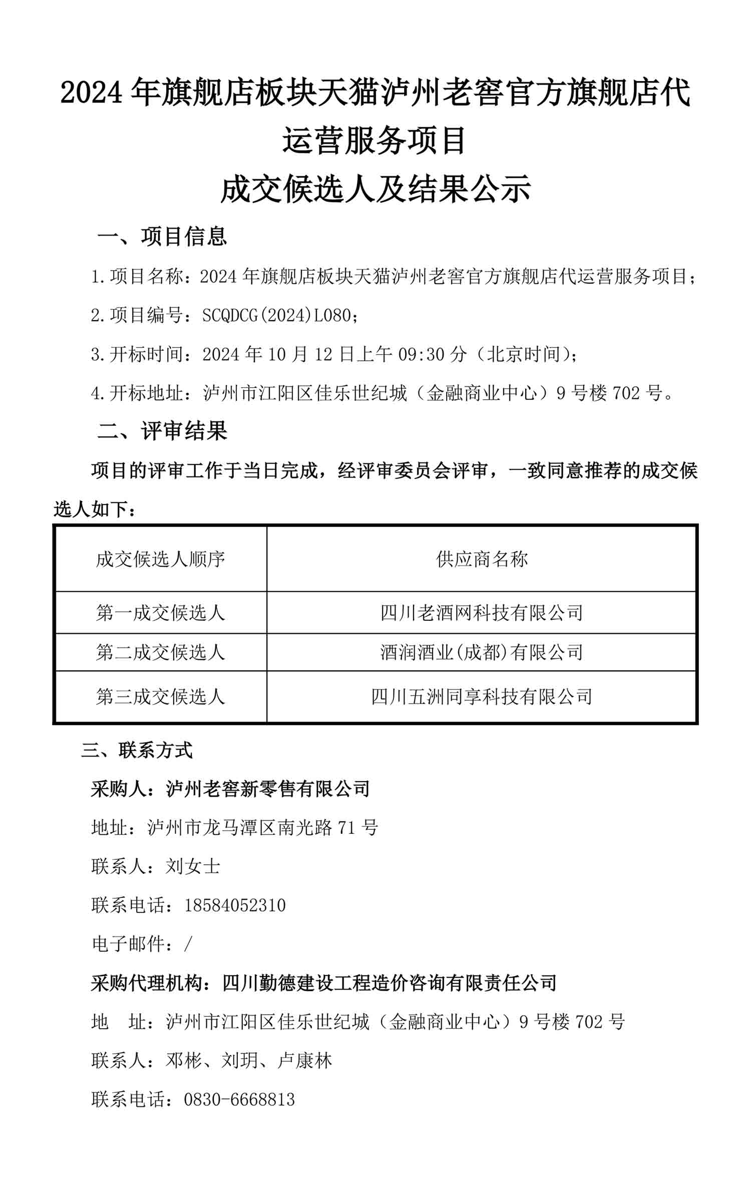 2024年天猫蘑菇视频 官方旗舰店代运营服务项目成交候选人及结果公示