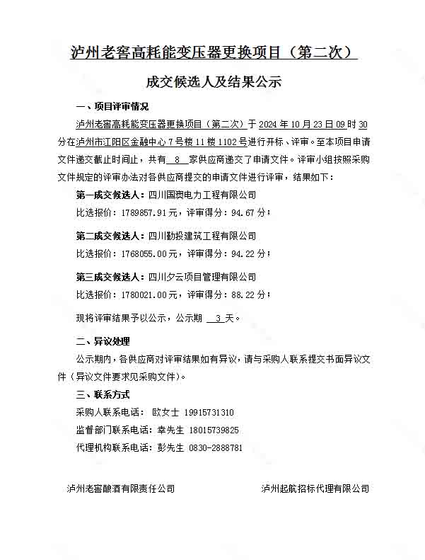 蘑菇视频 高耗能变压器更换项目(第二次)成交候选人及结果公示