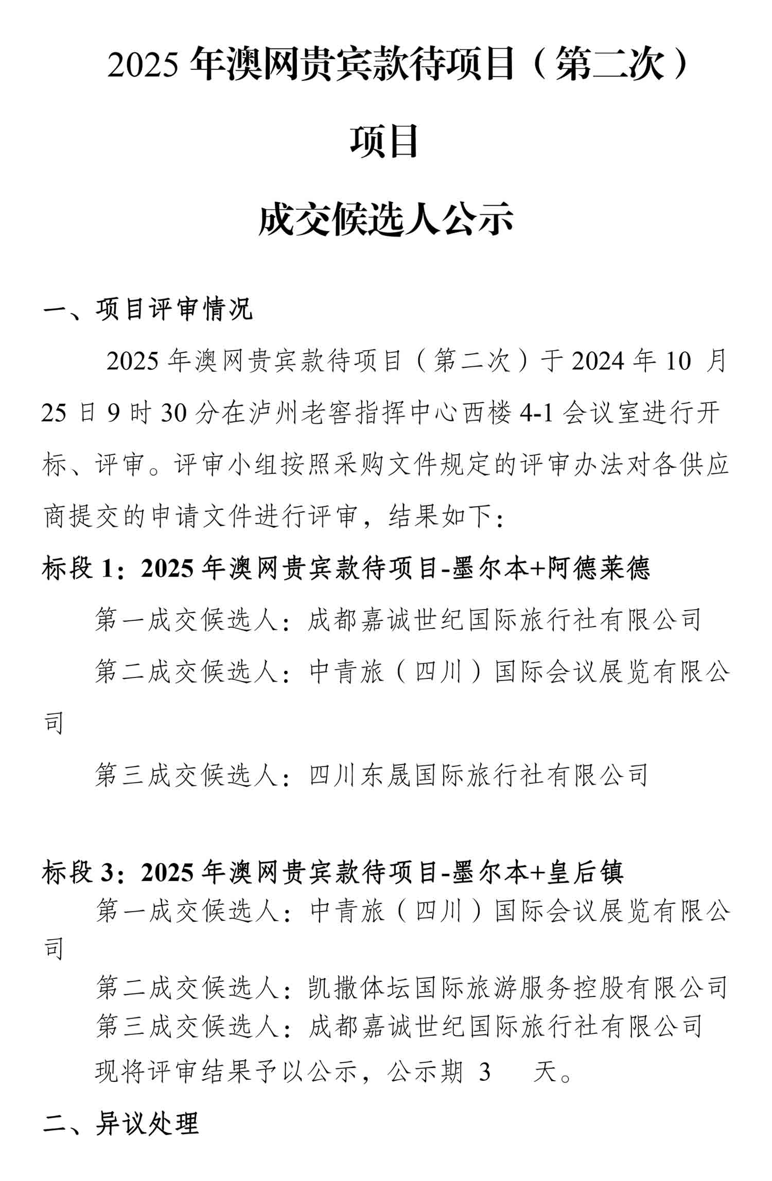 2025年澳网贵宾款待项目(第二次)成交候选人公示