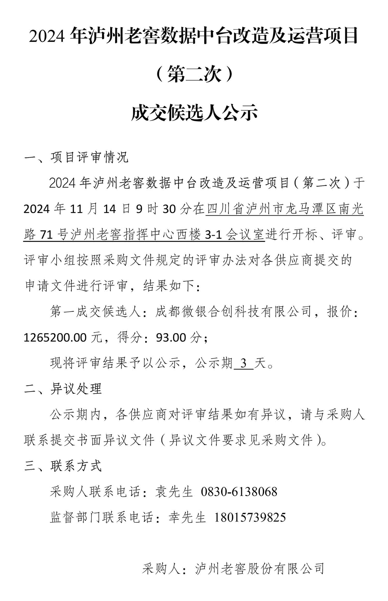2024年蘑菇视频 数据中台改造及运营项目(第二次)成交候选人公示