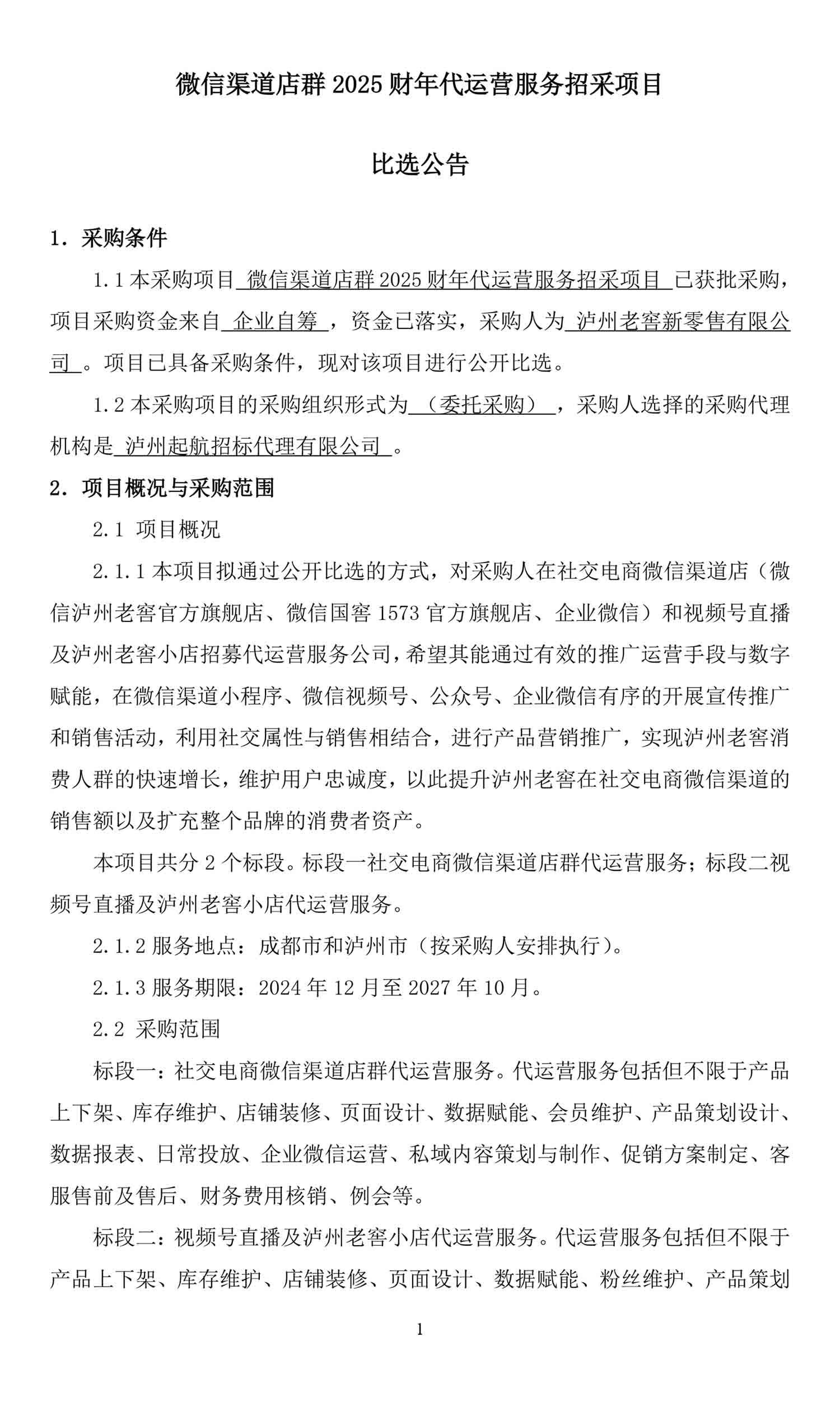微信渠道店群2025财年代运营服务招采项目比选公告