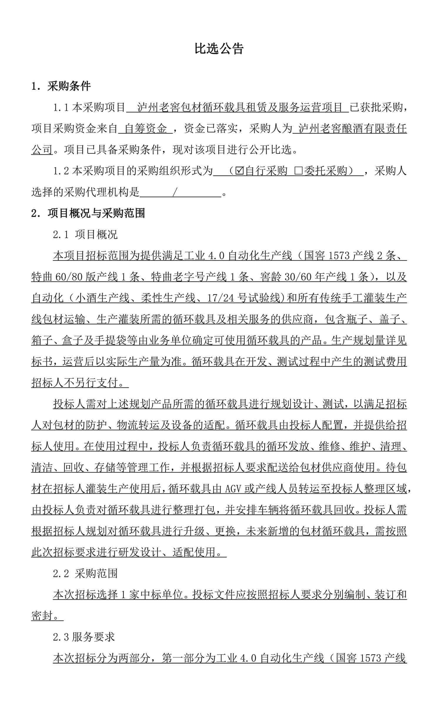 蘑菇视频 包材循环载具租赁及服务运营项目比选公告
