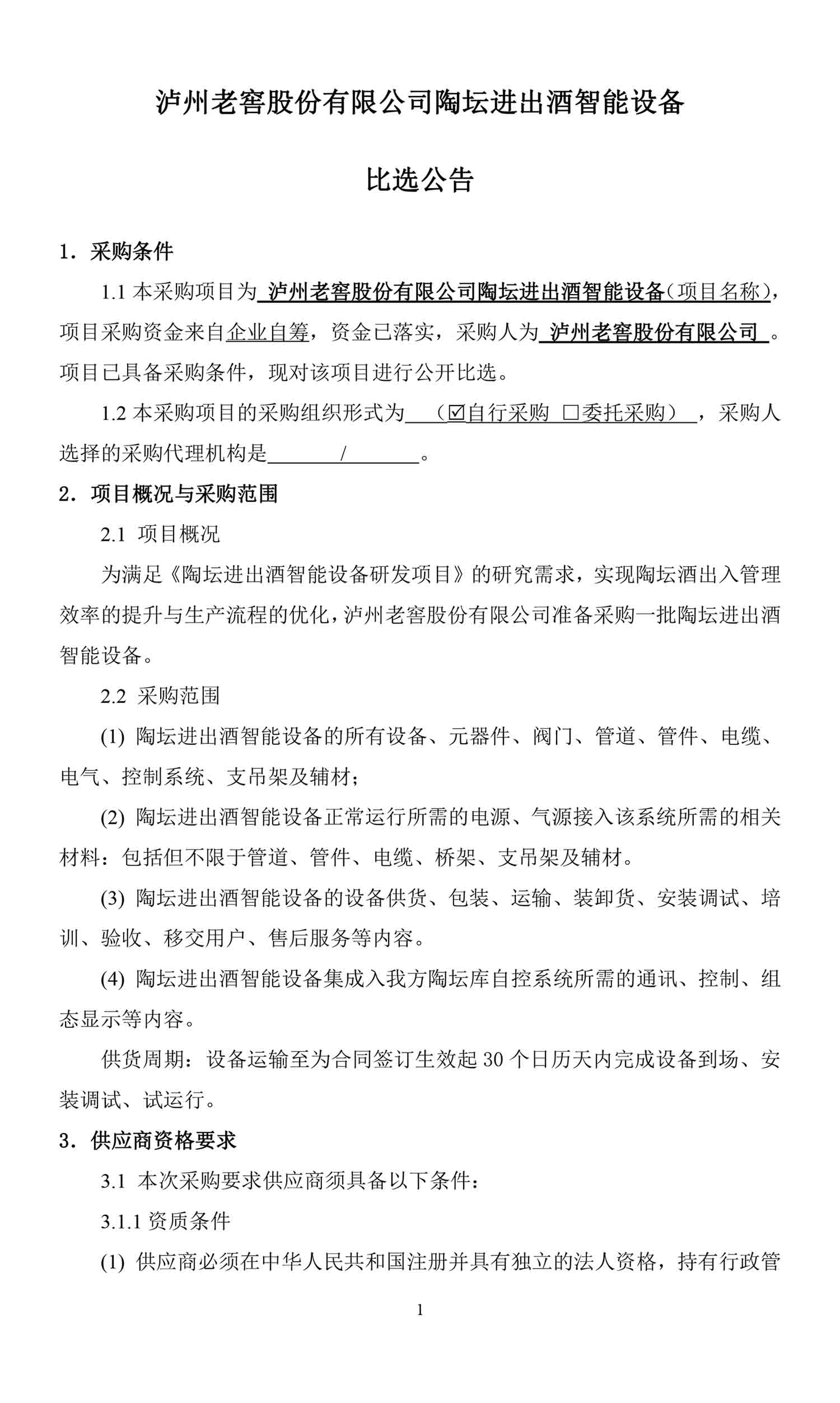 蘑菇视频 陶坛进出酒智能设备比选公告