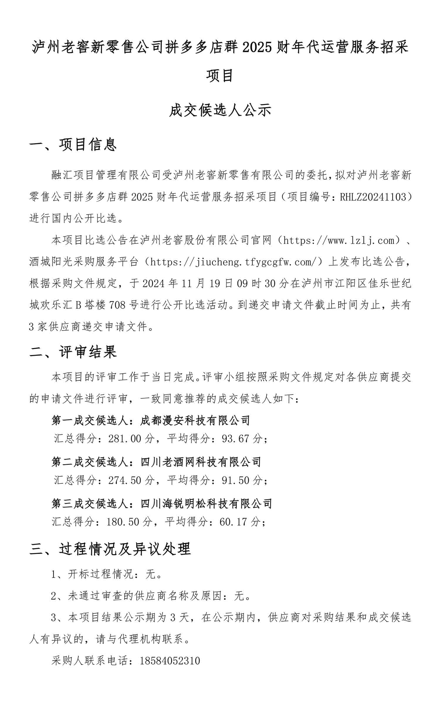 蘑菇视频 新零售公司拼多多店群2025财年代运营服务招采项目成交候选人公示
