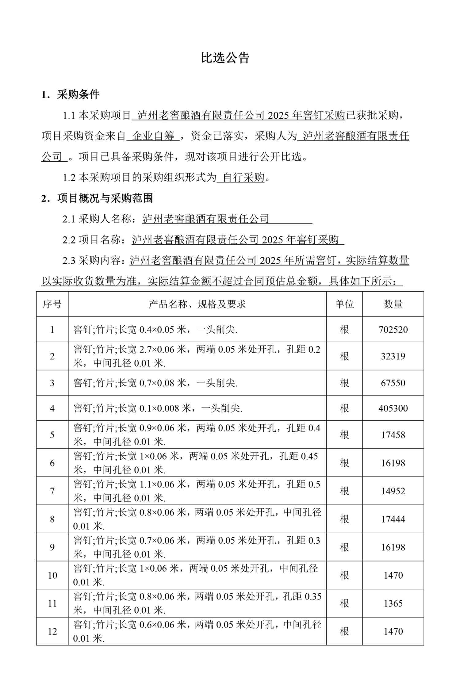 蘑菇视频 酿酒有限责任公司2025年窖钉采购比选公告