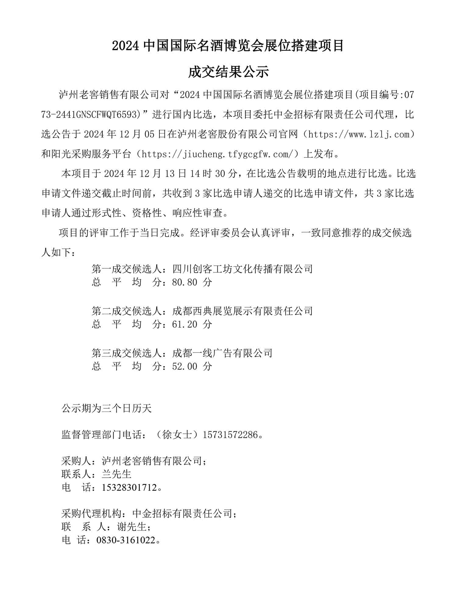 2024中国国际名酒博览会展位搭建项目成交结果公示
