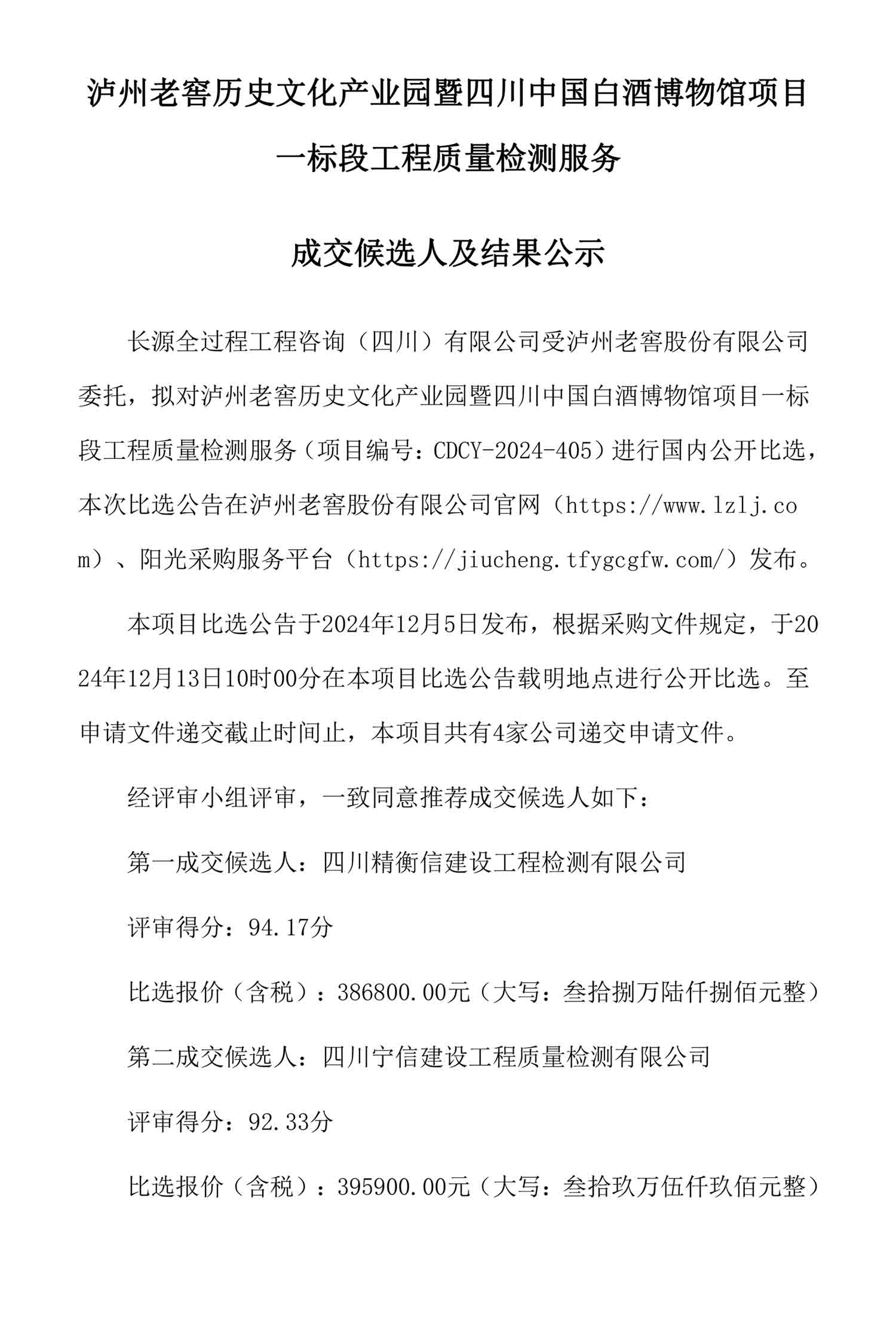 蘑菇视频 历史文化产业园暨四川中国白酒博物馆项目一标段工程质量检测服务成交候选人及结果公示
