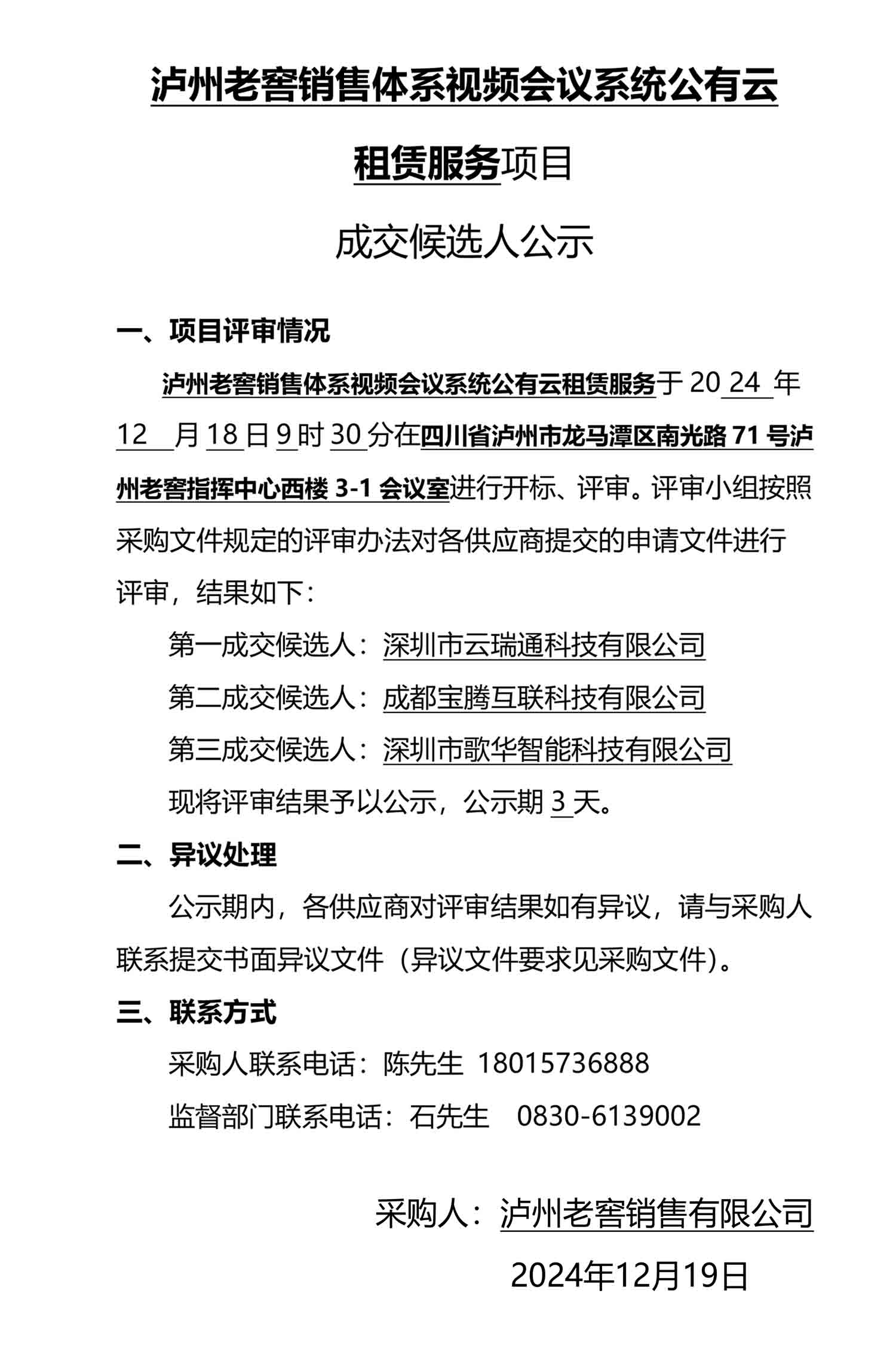 蘑菇视频 销售体系视频会议系统公有云租赁服务项目成交候选人公示