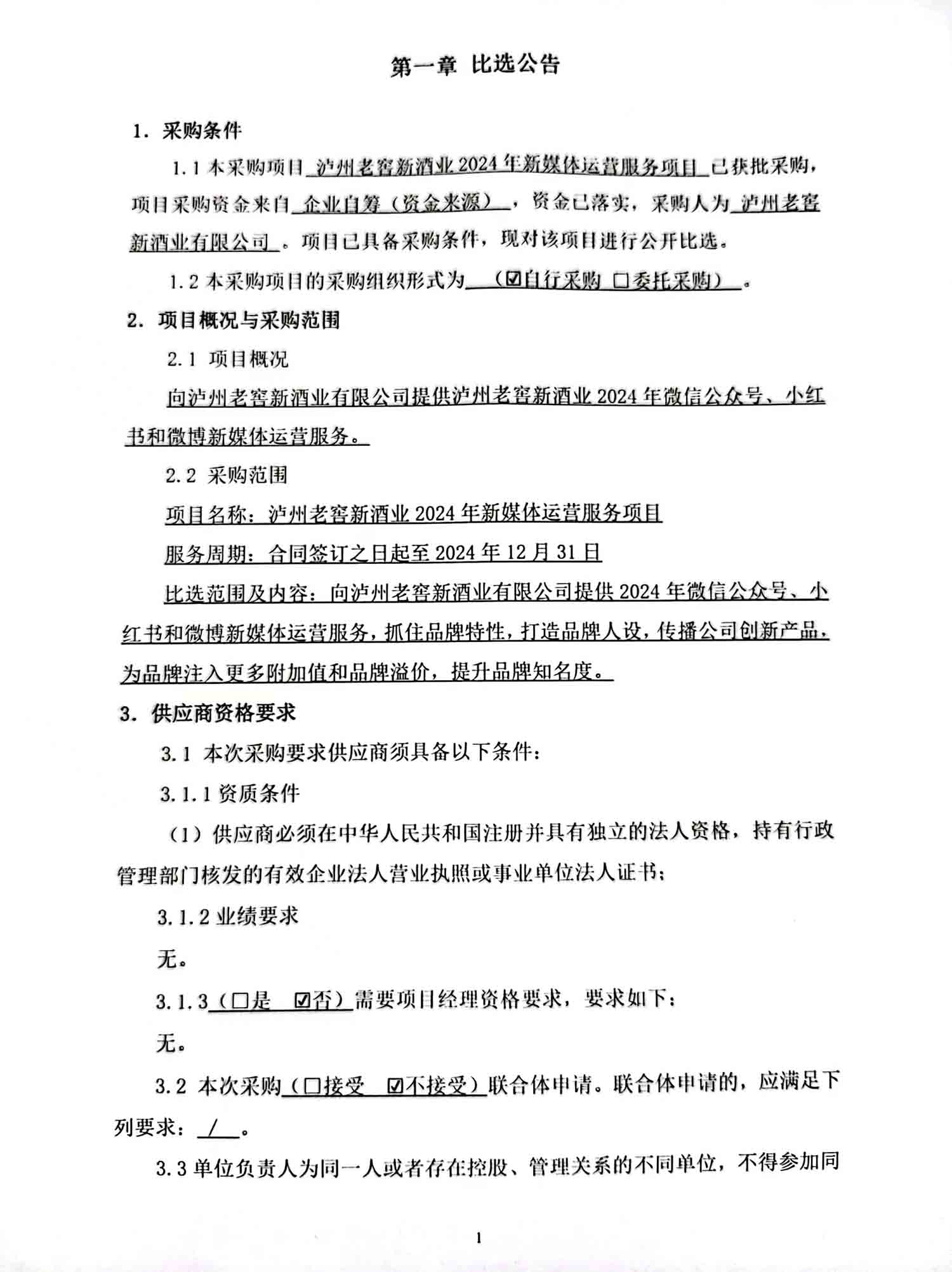 蘑菇视频 新酒业2024年新媒体运营服务项目比选公告