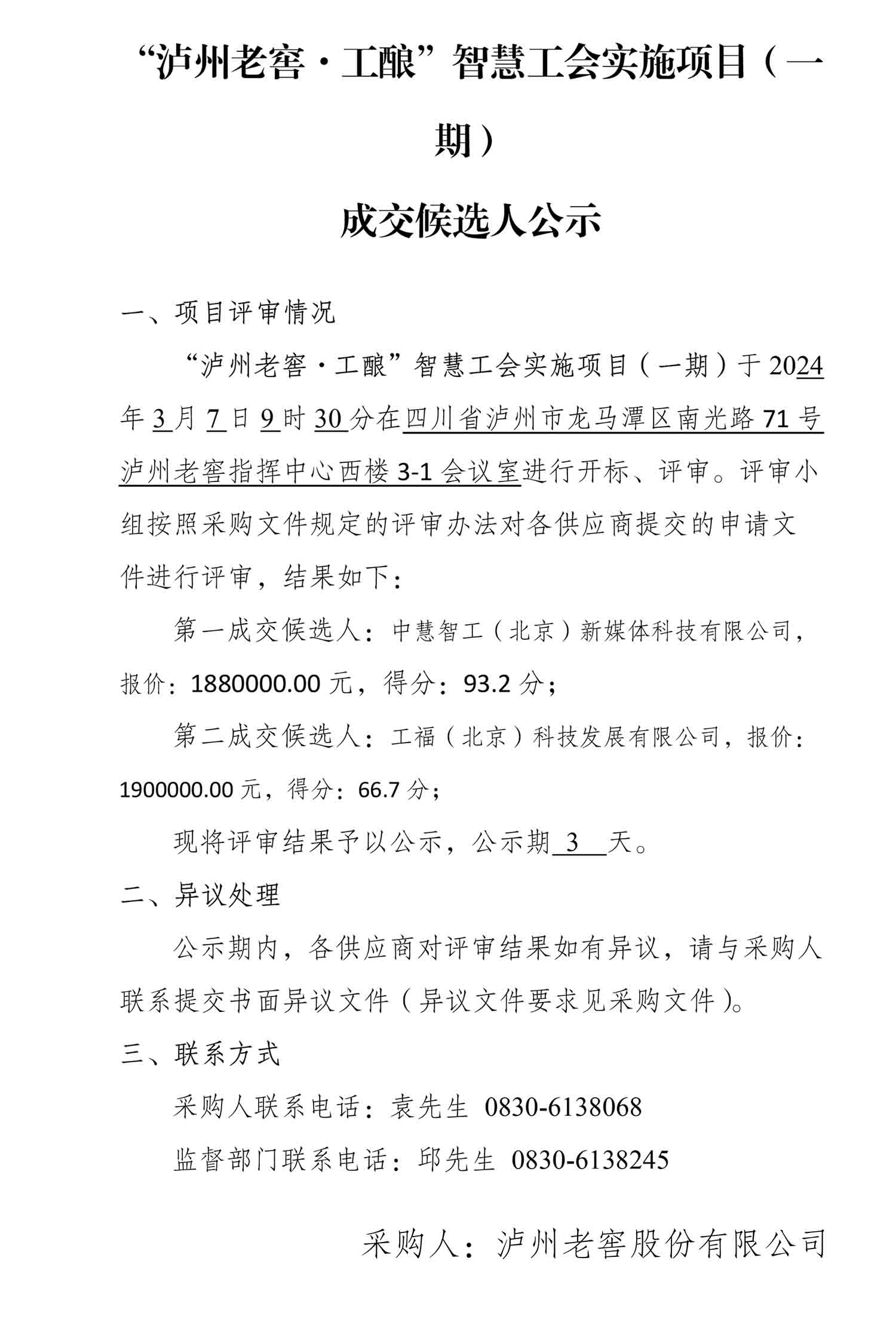 “蘑菇视频 ·工酿”智慧工会实施项目(一期)成交候选人公示