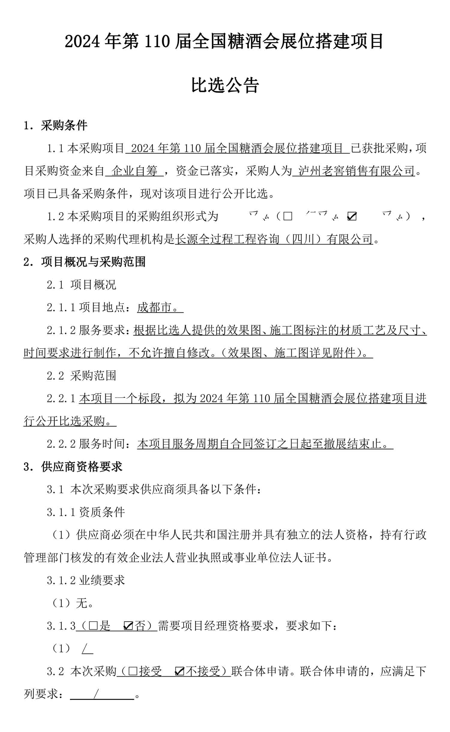 2024年第110届全国糖酒会展位搭建项目比选公告