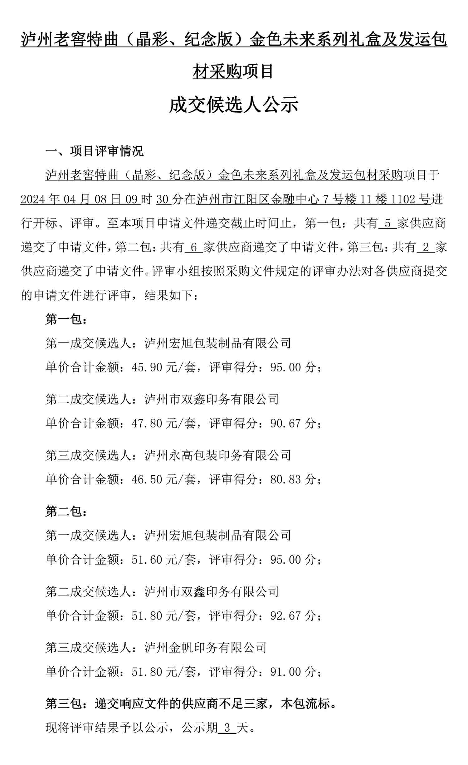 蘑菇视频 特曲(晶彩、纪念版)金色未来系列礼盒及发运包材采购项目成交候选人公示