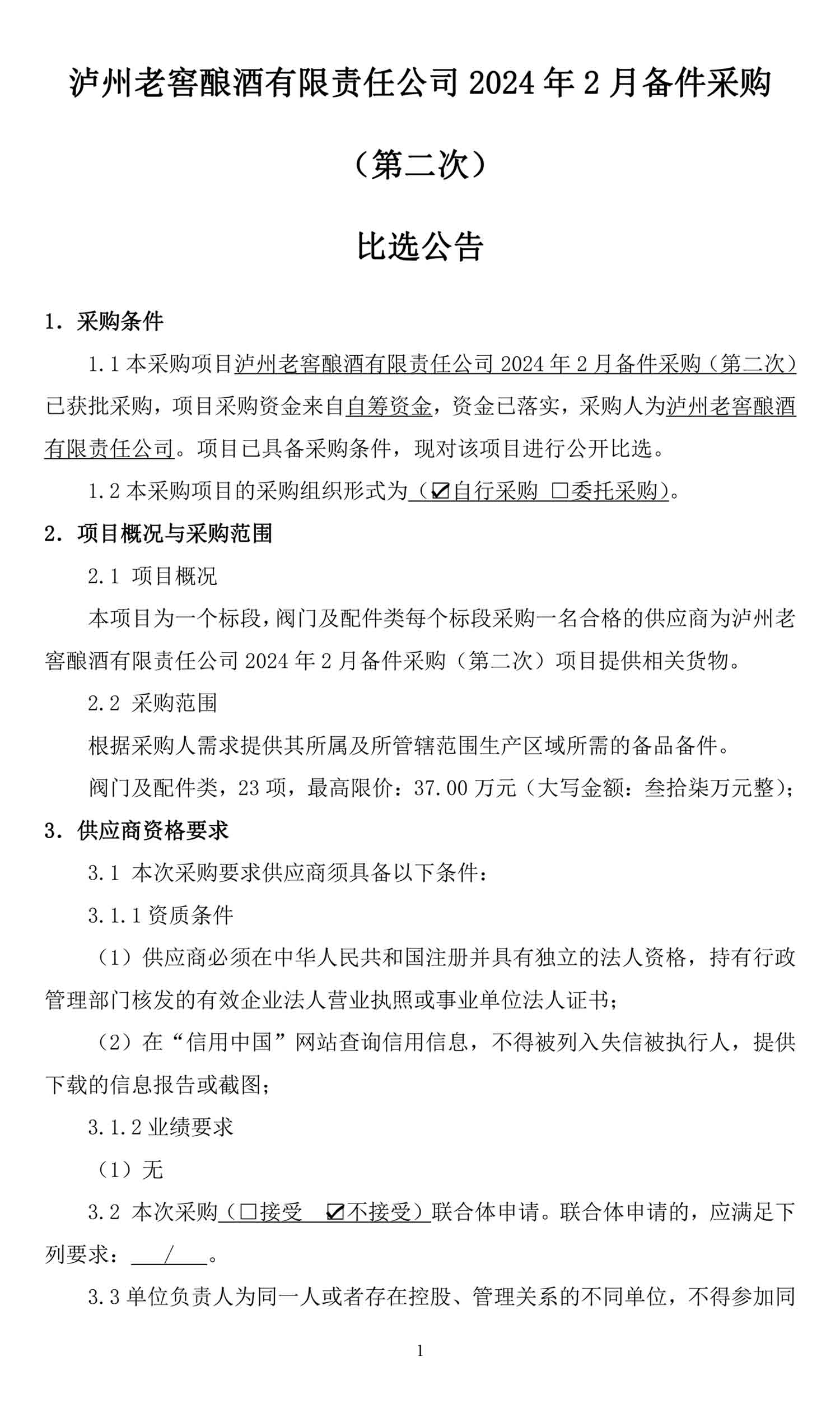 蘑菇视频 酿酒有限责任公司2024年2月备件采购(第二次)比选公告