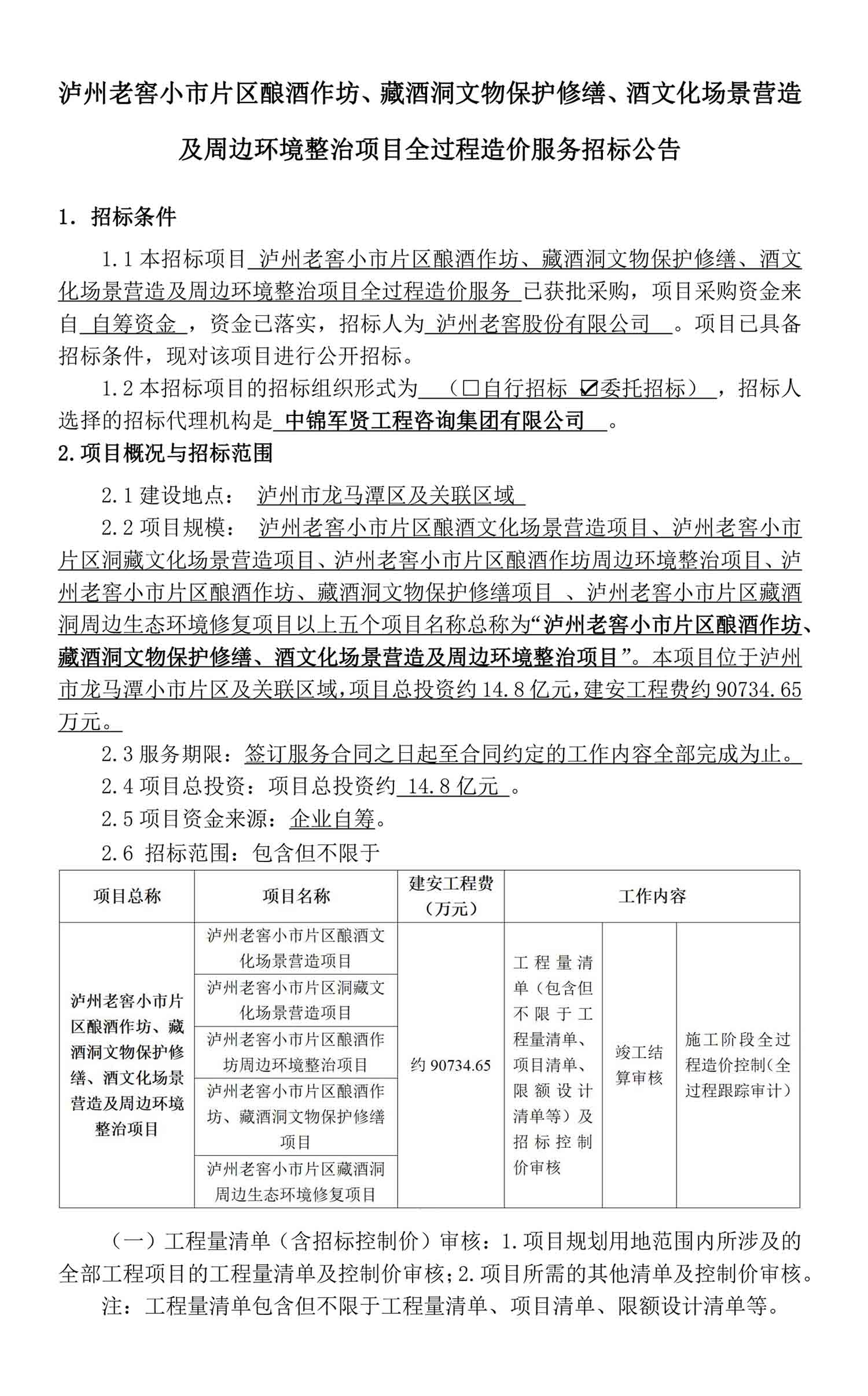蘑菇视频 小市片区酿酒作坊、藏酒洞文物保护修缮、酒文化场景营造及周边环境整治项目全过程造价服务招标公告
