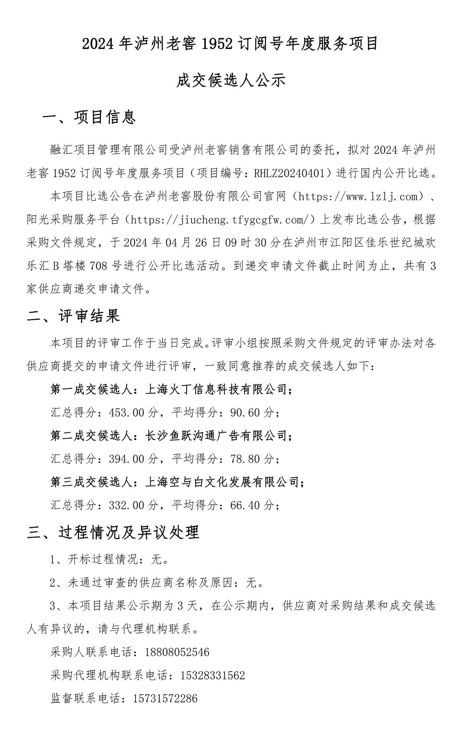 2024年蘑菇视频 1952订阅号年度服务项目成交候选人公示