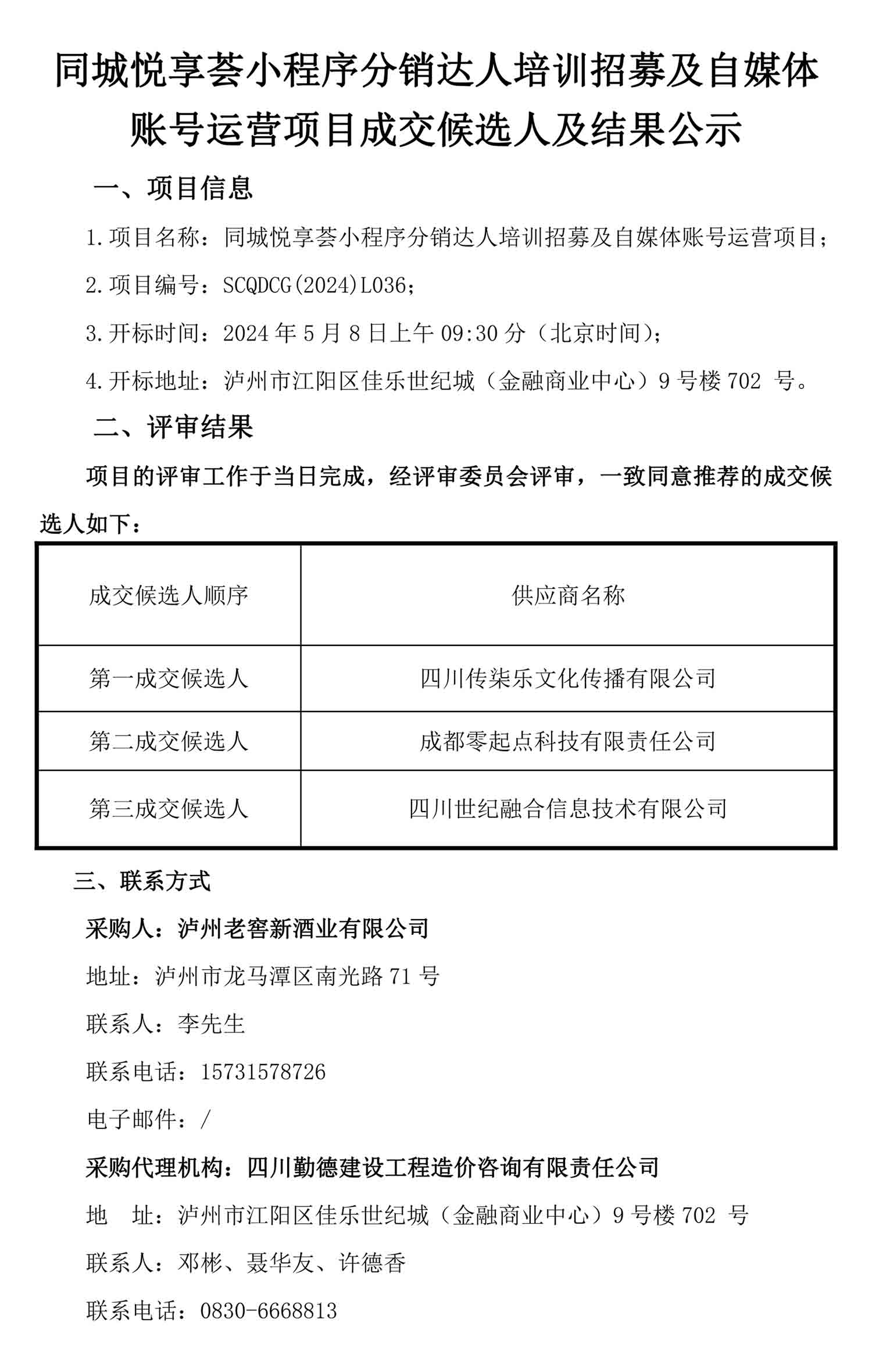 同城悦享荟小程序分销达人培训招募及自媒体账号运营项目成交候选人及结果公示