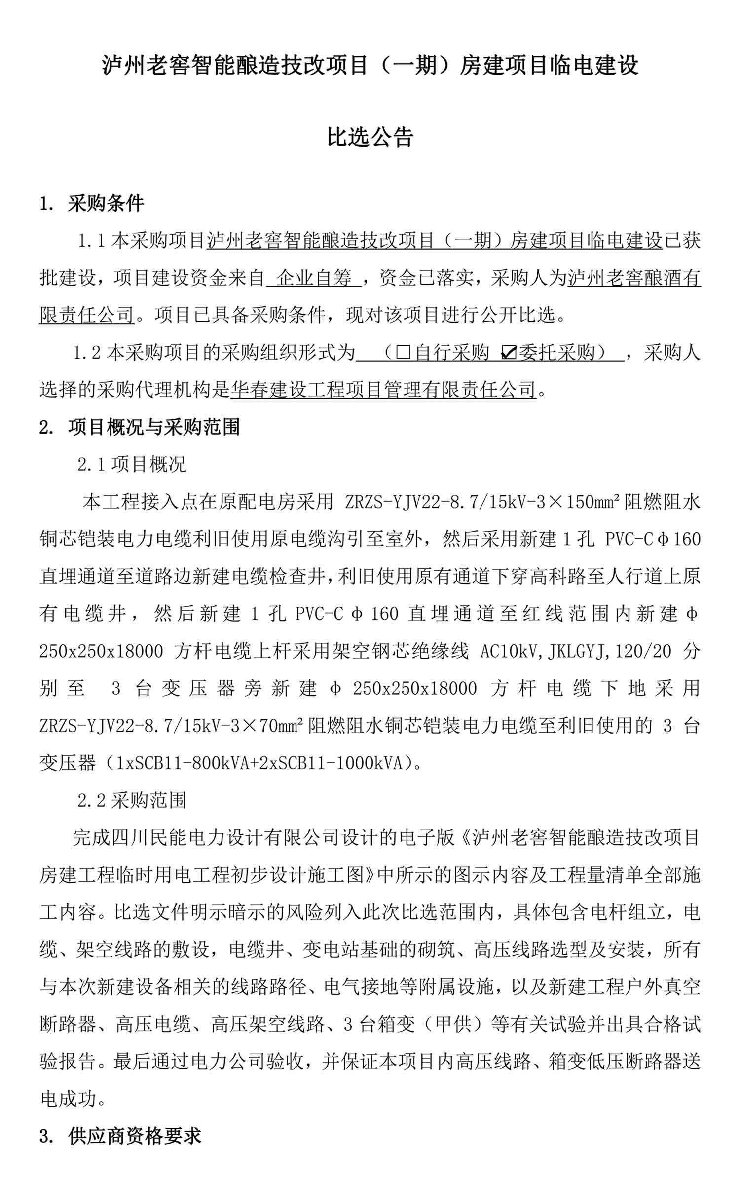 蘑菇视频 智能酿造技改项目(一期)房建项目临电建设比选公告