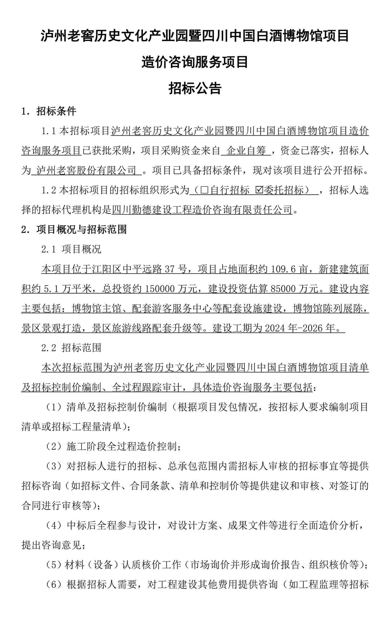 蘑菇视频 历史文化产业园暨四川中国白酒博物馆项目造价咨询服务项目招标公告