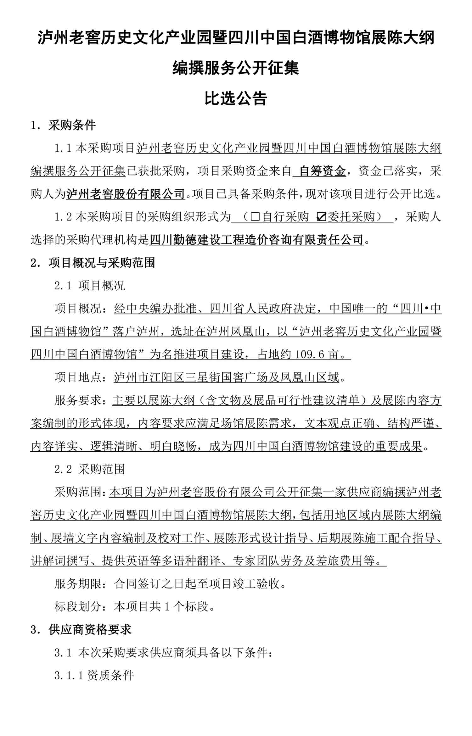 蘑菇视频 历史文化产业园暨四川中国白酒博物馆展陈大纲编撰服务公开征集比选公告