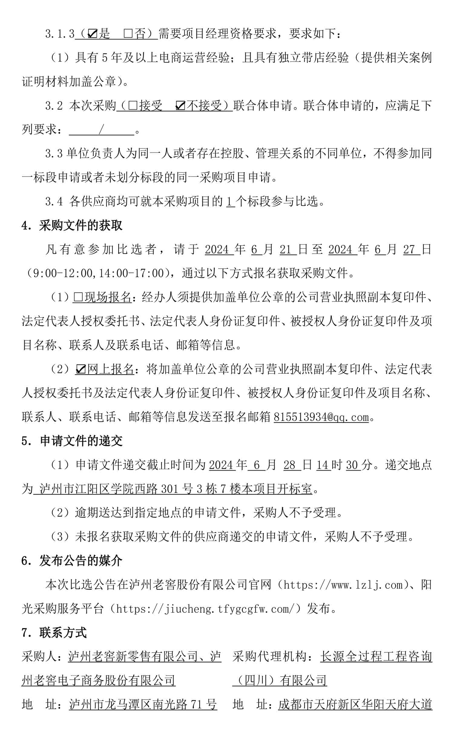 2024年京东国窖1573官方旗舰店代运营招采项目比选公告