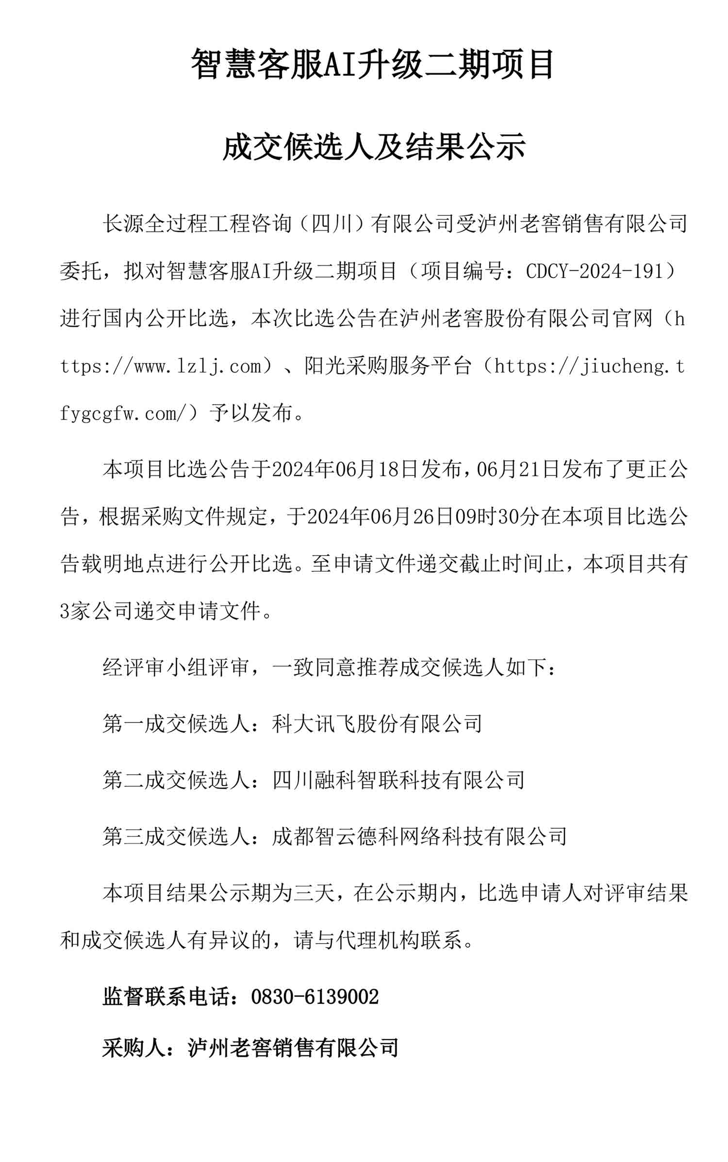 智慧客服AI升级二期项目成交候选人及结果公示