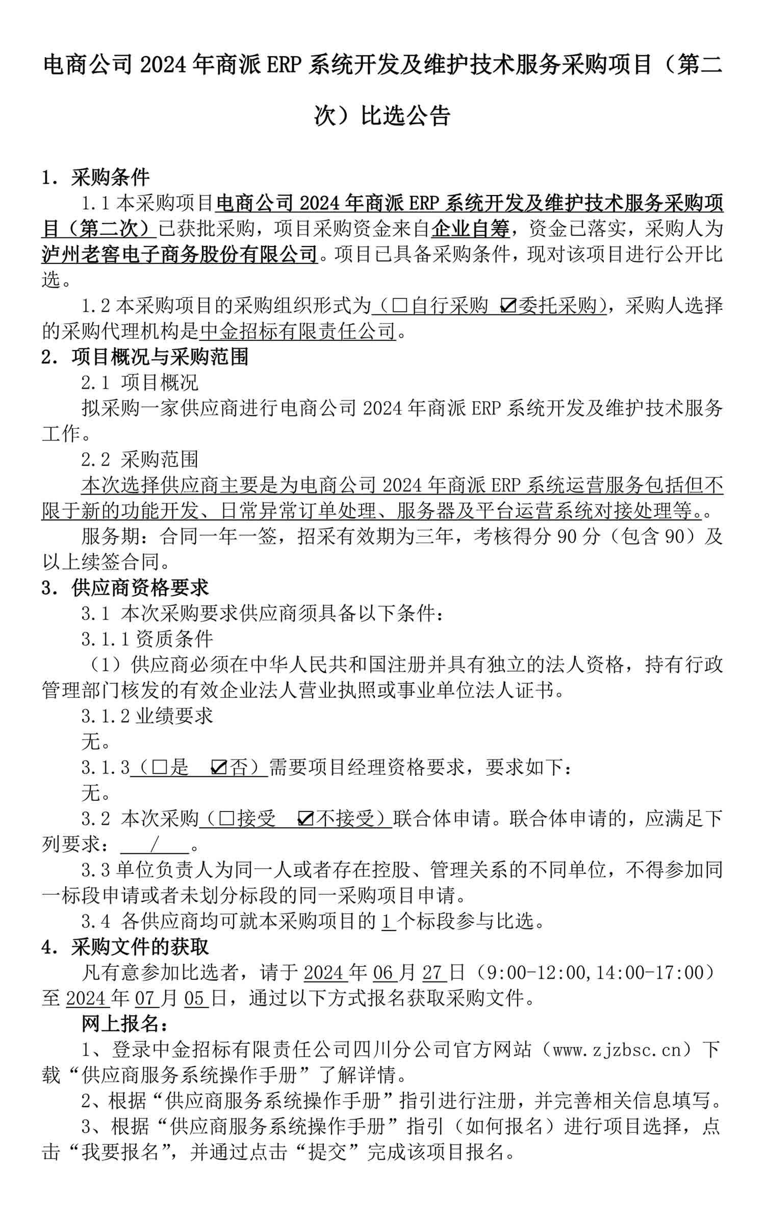 电商公司2024年商派ERP系统开发及维护技术服务采购项目(第二次)比选公告