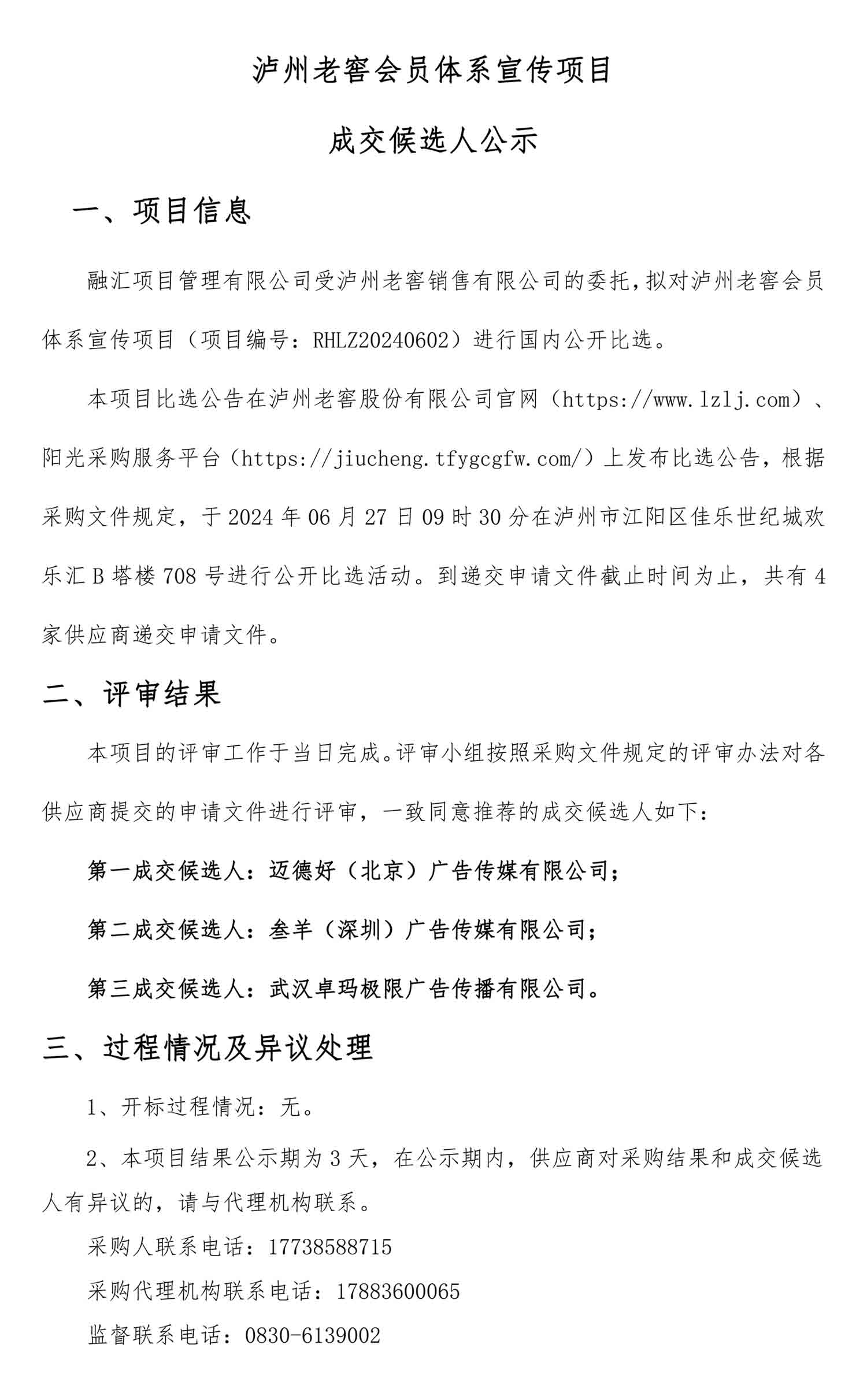 蘑菇视频 会员体系宣传项目成交候选人公示
