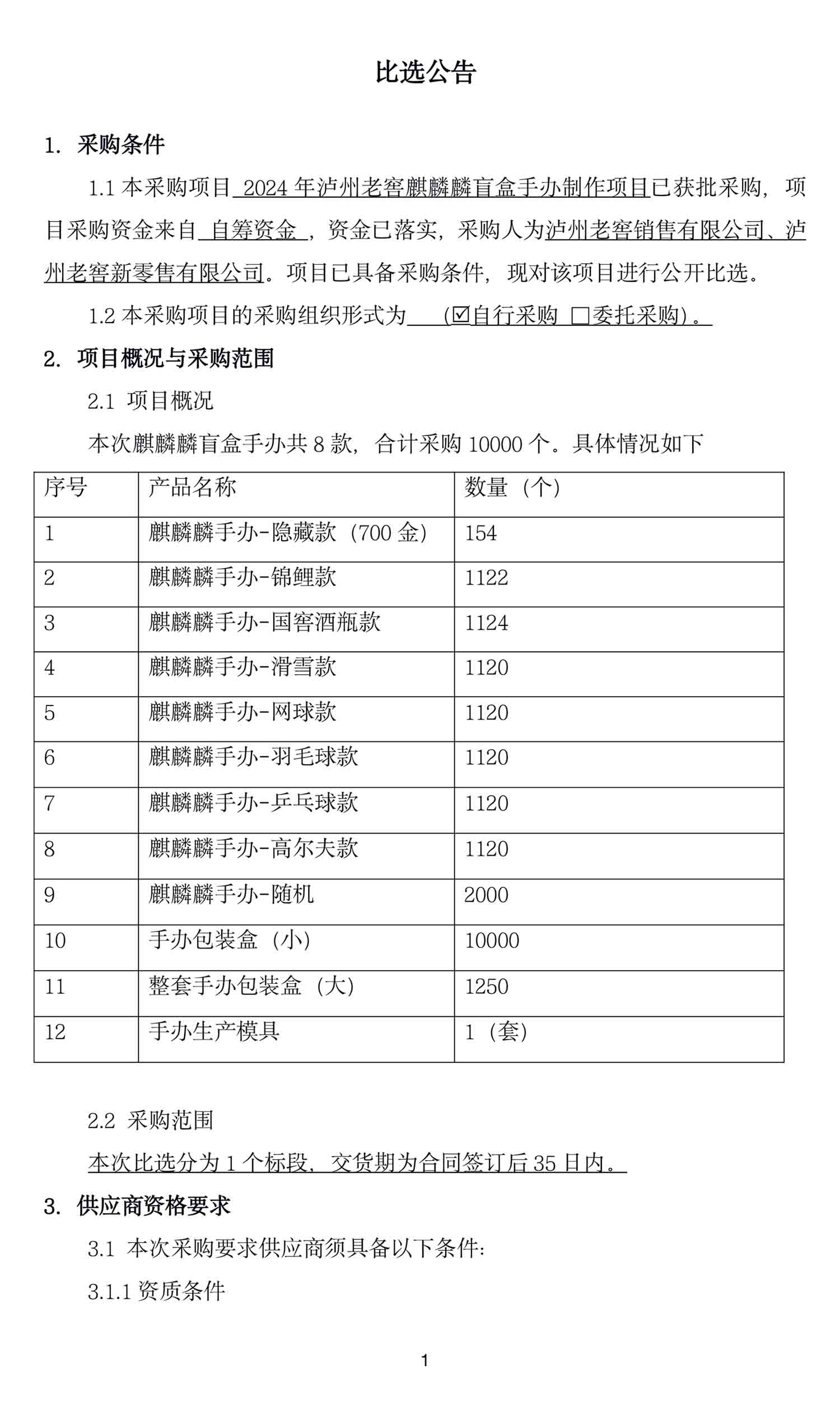 2024年蘑菇视频 麒麟麟盲盒手办制作项目比选公告