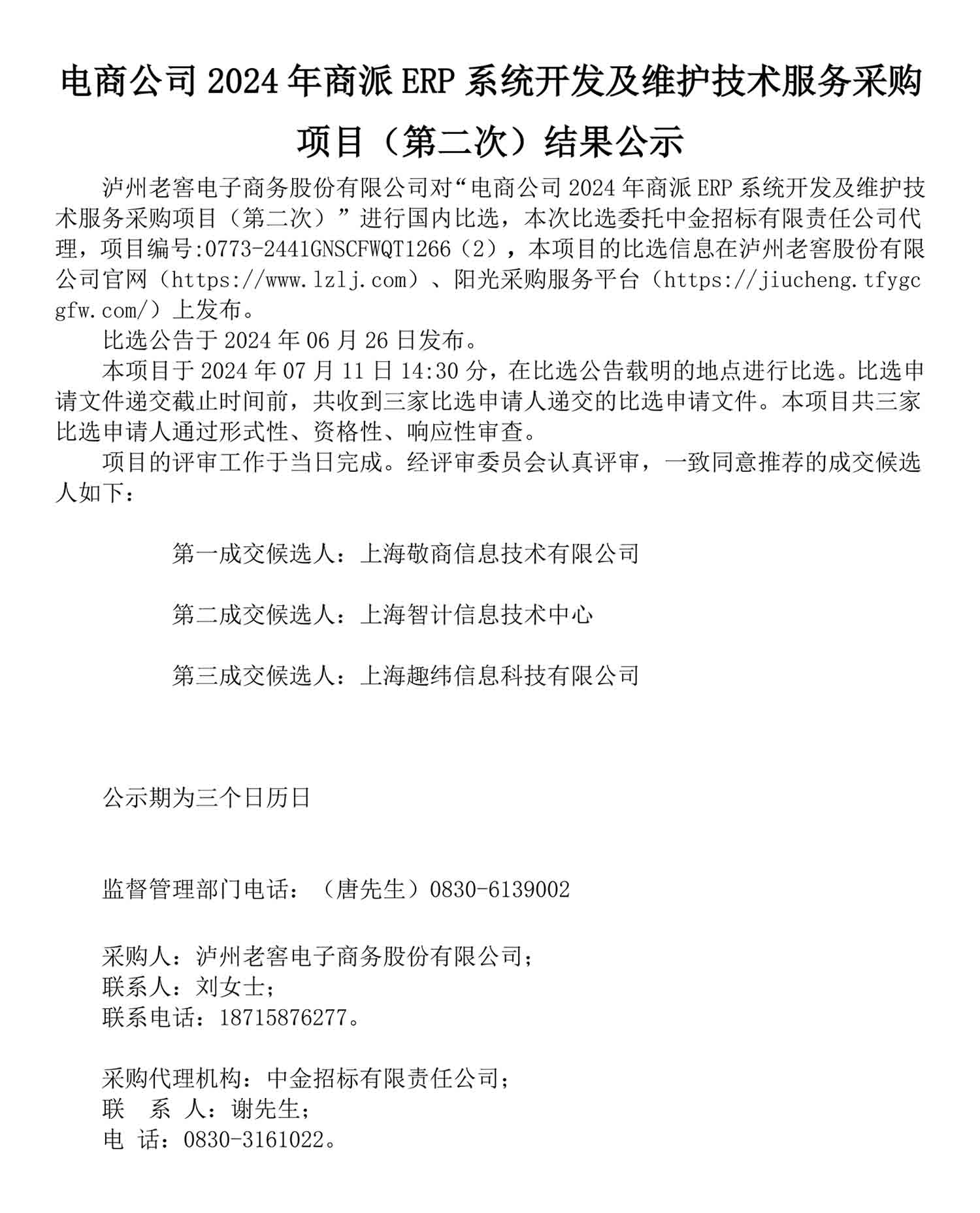 电商公司2024年ERP系统开发及维护技术服务采购项目(第二次)结果公示