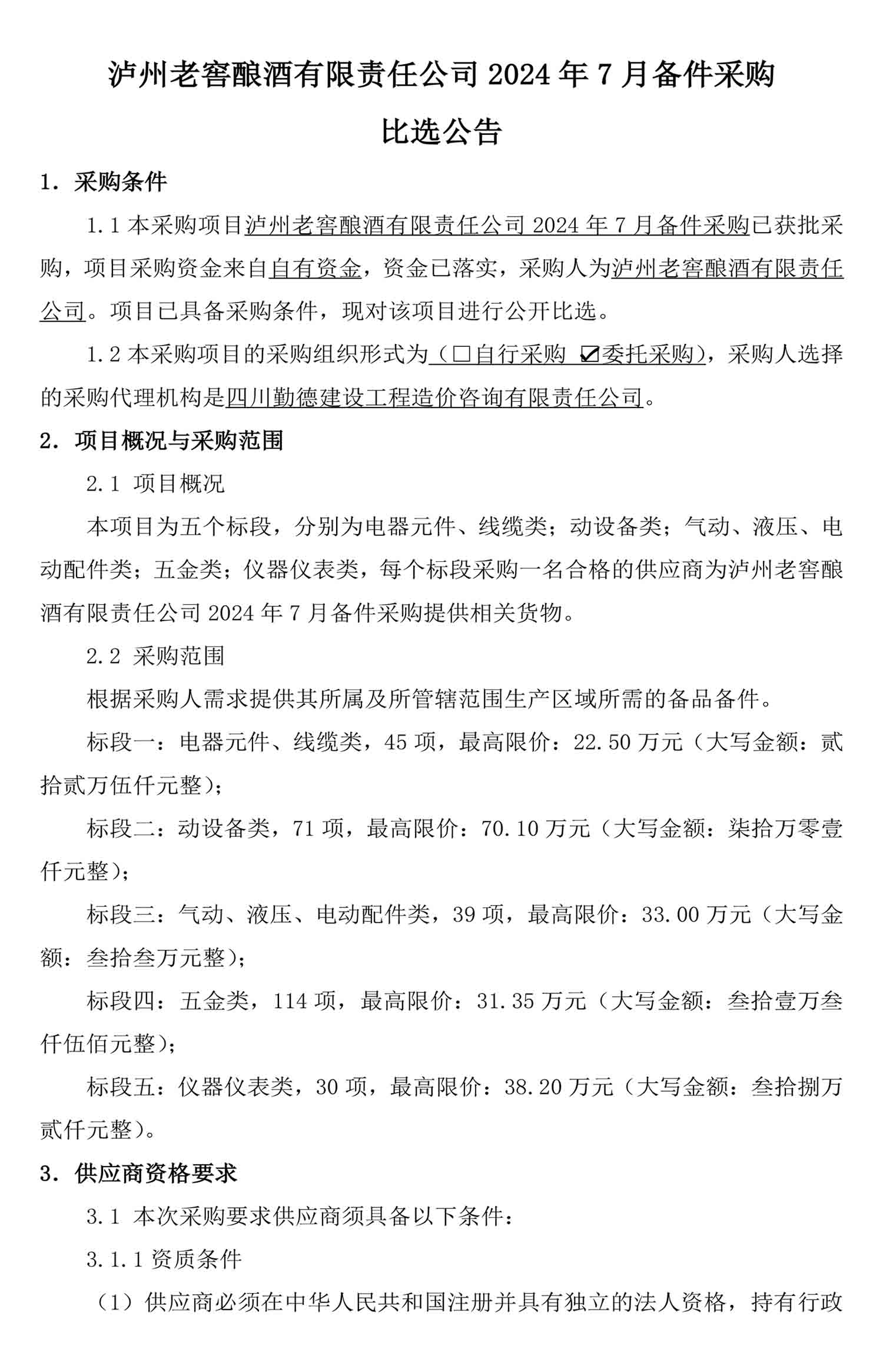 蘑菇视频 酿酒有限责任公司2024年7月备件采购比选公告